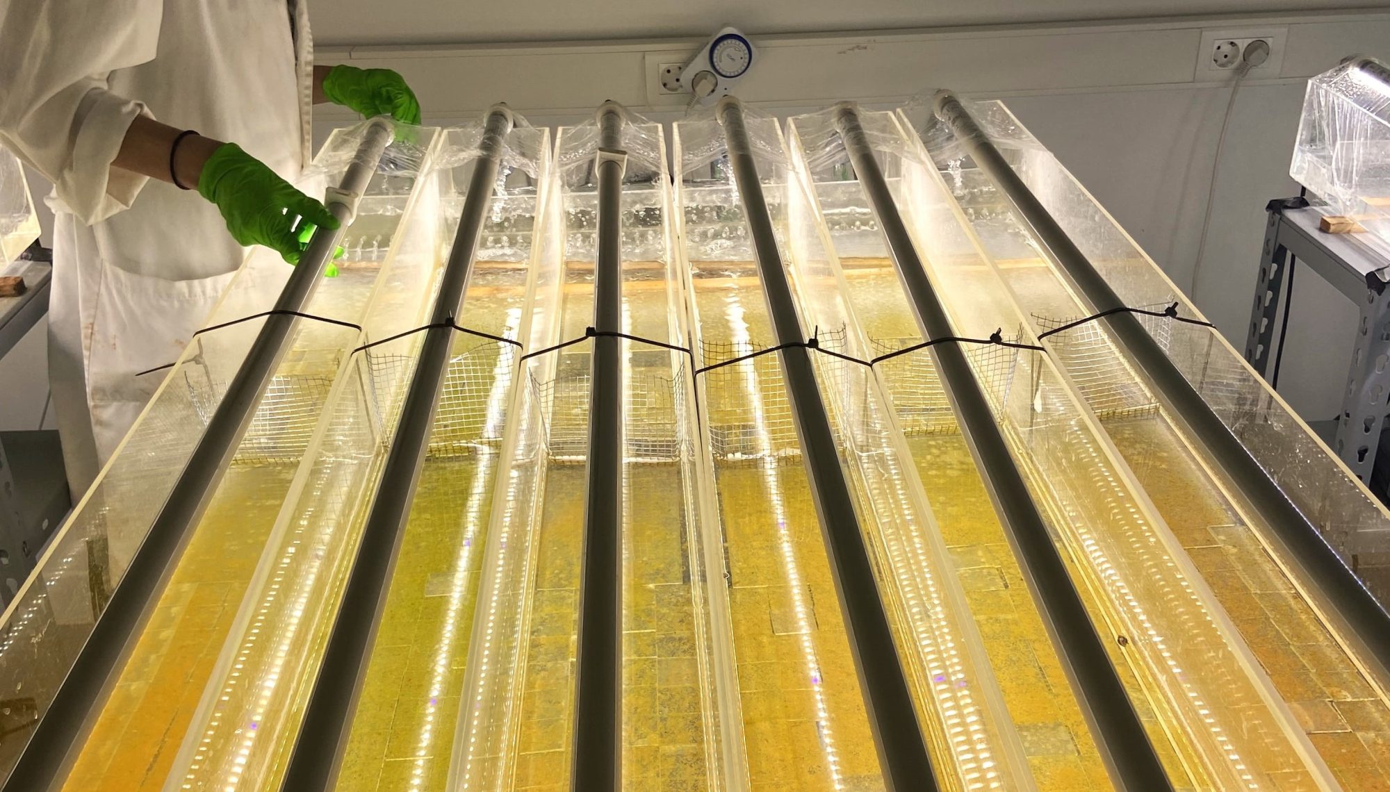 Per determinar que els efluents de la planta pilot no tenen un efecte significatiu als ecosistemes aquàtics, es treballa amb dos tipus de xarxes tròfiques (relacions alimentàries entre organismes). Una de les xarxes està basada en biofilm (microorganismes fotosintètics) i cargols d’aigua dolça, i una altra està basada en la descomposició amb fulles de vern que simulen fulles que hagin caigut al riu i gambes de riu que mengen la fullaraca.