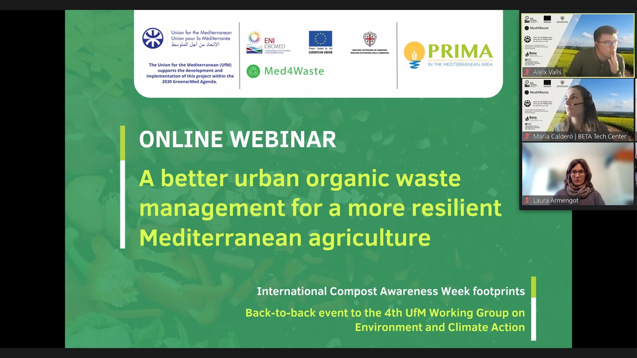 The Med4Waste project organised a webinar on Wednesday 23 May that brought together a hundred experts and practitioners from different fields from across the Mediterranean region and beyond, to address the challenges and shared solutions between urban organic waste management and the need to move towards more resilient agricultural systems in the Mediterranean region.